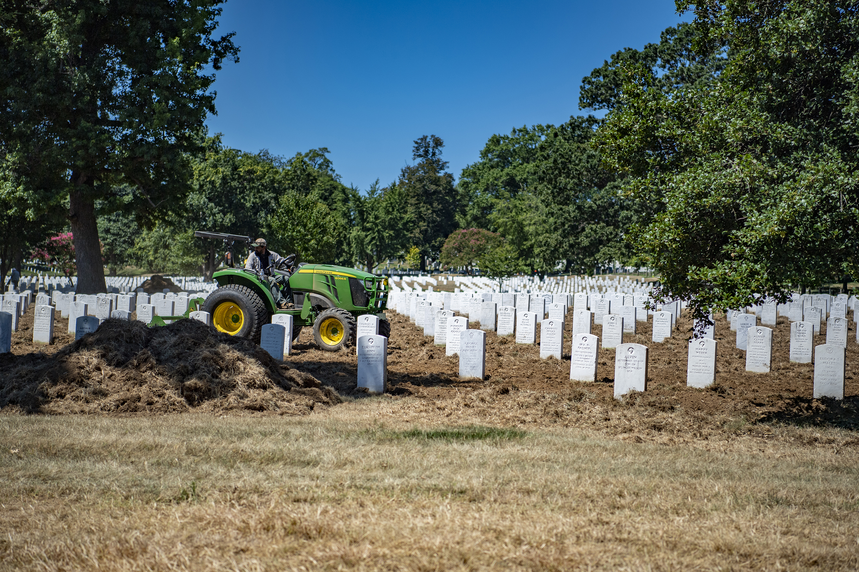 If you ever notice sections of Arlington National Cemetery (ANC) stripped of their lush green grass, just know that they appear that way for an important reason. “It’s turf renovation,” explained Stephen Van Hoven, who has been ANC’s chief of horticulture for the last nine years. “We do about 30 acres every year.” As a national shrine, and a Level III Arboretum, ANC maintains its grounds to national shrine standard.