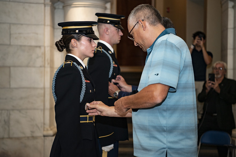 At the ceremony, Kwiatkowski's and Glover's fathers pinned the badges on the right breast pockets of their uniforms. Lt. Col. Peter Vangjel, the commander of the 4th Battalion, 3rd Infantry Regiment, known as "The Old Guard," explained the importance of the Tomb Guards.