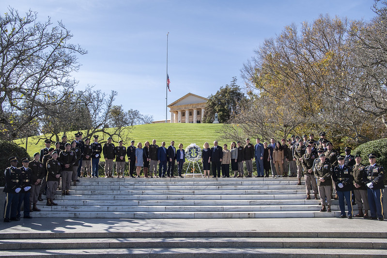 Five members of President Kennedy’s extended family attended the event: Kathleen Kennedy Townsend and Christopher Kennedy, the children of JFK’s brother Robert (who is also buried at ANC); Victoria Lawford Pender and Robin Lawford, the daughters of the president’s sister Patricia Kennedy Lawford; and Victoria Lawford Pender’s daughter, Alexandra Pender.