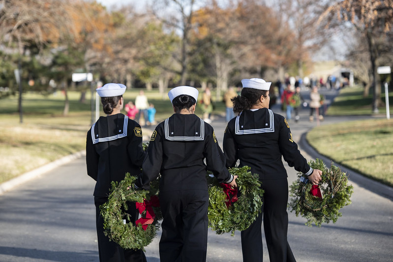 They lined up by thousands to honor the nation’s fallen during the holiday season. When Arlington National Cemetery opened on the morning of Saturday, Dec. 16, 2023, civilians and military personnel alike retrieved wreaths from trucks and headed across the grounds to place them at headstones and columbarium niches.