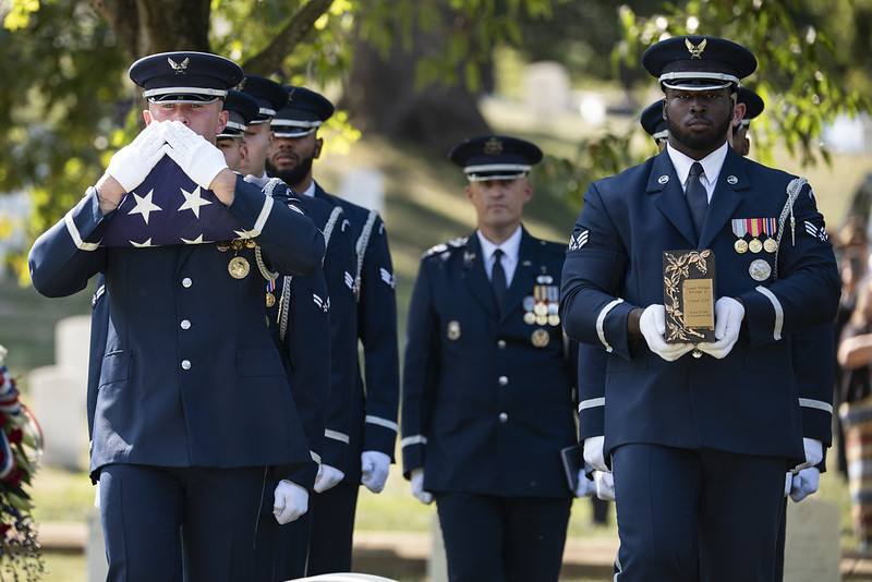 As a testament to Kittinger’s importance to the Air Force and his country, Maj. Gen. Daniel DeVoe, commander of the Air Force District of Washington, presented the American flag to Sherry Kittinger, the pioneer’s wife.