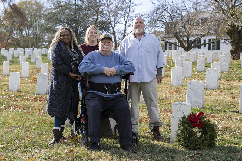On Dec. 8, 2024, Robert and Ray, accompanied by Ray’s wife, Tajuanda Christman, and Robert’s niece, Chasitie Marcinkowski — herself an Army veteran — finally made it to Section 27. As Robert walked through the section, he counted the numbers on each headstone, anticipating reaching headstone 19. Sitting in his walker-rollator next to William Christman's headstone, he addressed his ancestor as if greeting a friend. “Hey buddy,” he said. “I hope you’re enjoying your rest.”
