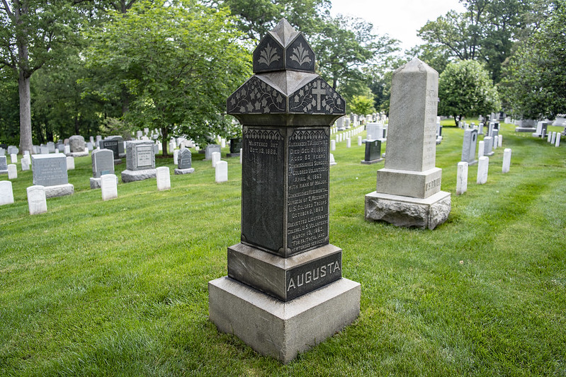 Jane Delano, U.S. Army (1862-1919) — A distant relative of Franklin Delano Roosevelt, Jane Delano served as superintendent of the U.S. Army Nurse Corps from 1909 to 1912, and in 1909 founded the American Red Cross Nursing Service. By the outbreak of World War I, the American Red Cross Nursing Service had more than 8,000 registered and trained nurses ready for emergency response. Delano was on a Red Cross mission in France when she died in 1919; her last words reportedly were, "I must get back to my work." She was posthumously awarded the Distinguished Service Medal and reinterred a year later in the "Nurses' Section" of the cemetery. (Section 21, Grave 6)