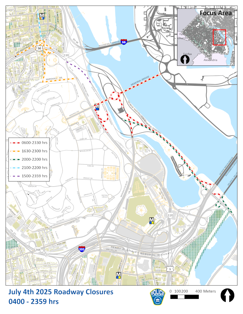 • Access to Arlington National Cemetery remains open via Memorial Avenue from Route 110 North.