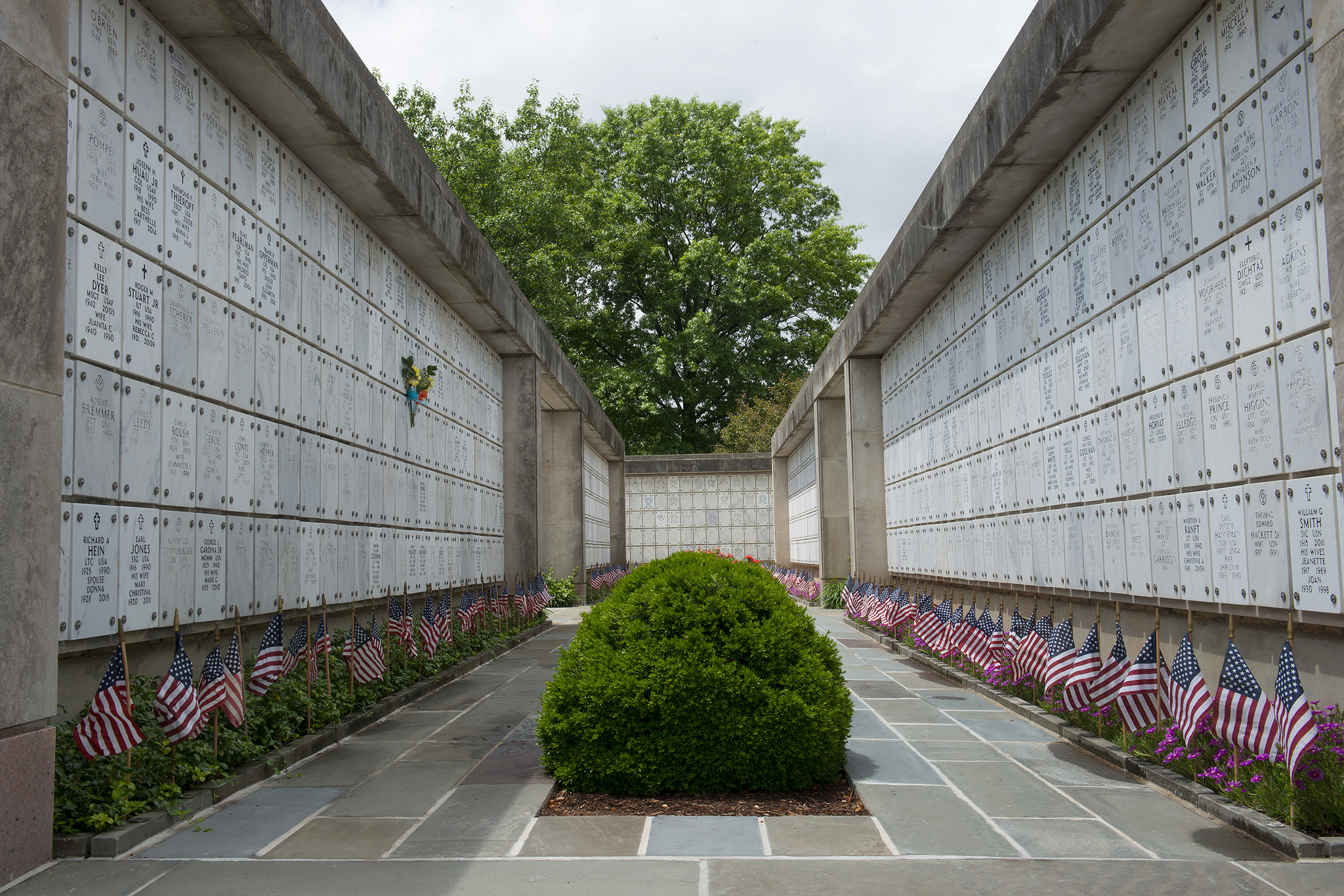 Flags line Columbarium Court 2 at Arlington National Cemetery for Flags-In, May 25, 2017. Over 280,000 U.S. flags are placed at each headstone in the cemetery before Memorial Day. (U.S. Army photo by Elizabeth Fraser, Arlington National Cemetery)