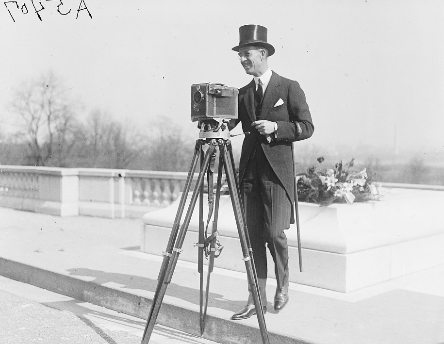 Prince Andrew of Greece stand with his camera directly in front of the Tomb of the Unknown Soldier in March 1923. Note how close he could get to the Tomb. (Library of Congress)