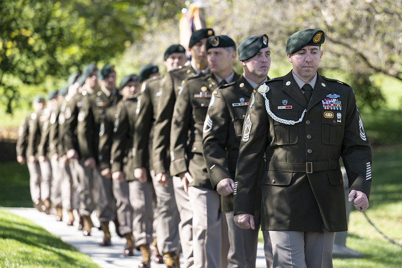On Oct. 17, 2024, President John F. Kennedy’s voice echoed across the hills of Arlington National Cemetery as a recording from a speech he delivered at Fort Bragg, North Carolina, on Oct. 12, 1961, played over loudspeakers. Two lines of U.S. Army Special Forces soldiers stood at attention on either side of the president’s grave. “If freedom is to be saved,” JFK’s voice told the large crowd gathered at his gravesite in Section 45, the United States would need, “a whole new kind of strategy, a wholly different kind of force, and therefore a new and wholly and different kind of military training.”