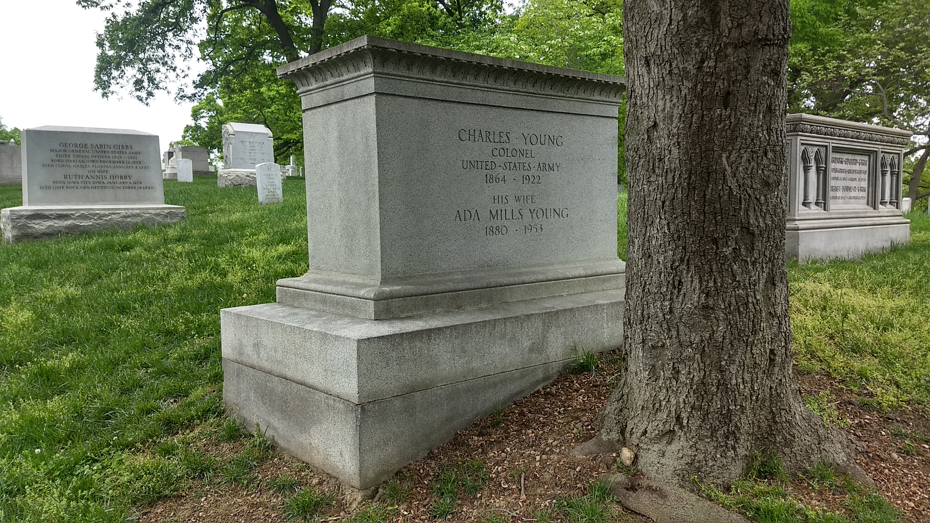 Young’s widow, Ada Mills Young, died in 1953 and was buried with him, but the headstone was not updated with her name until 2018. Private markers like Young’s were once allowed in older sections of Arlington National Cemetery, although family members were responsible for making any changes to these headstones, including the addition of names after the burial of a spouse or dependent.