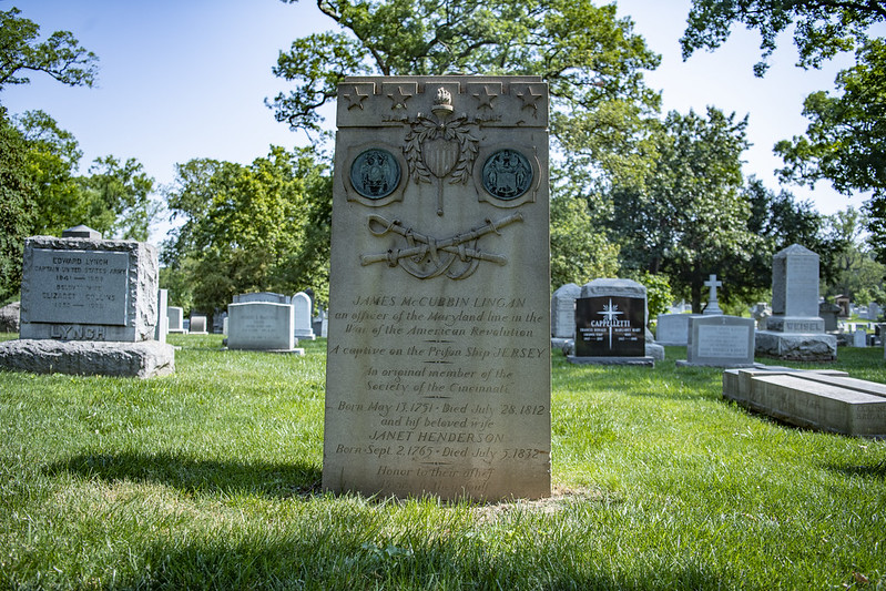 Initially buried in a Georgetown, Washington D.C. cemetery that fell into disrepair, the remains of five Revolutionary War veterans (William Ward Burrows, Joseph Carleton, James House, Thomas Meason and Caleb Swan) were relocated to ANC. Burrows, House, Meason and Swan were reburied at Arlington on May 12, 1892 in Section 1. Carleton’s gravesite remained in Georgetown until that cemetery closed, at which point he was reburied next to his comrades on November 13, 1907.