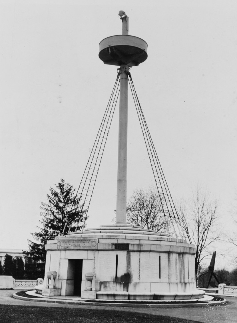 Other memorials on ANC’s grounds honor groups of seafarers lost in the line of duty. The USS Maine Memorial features a large vertical mast from Maine, which marks an area where 165 sailors were reinterred in 1899, after the conclusion of the Spanish-American War (1898). The remains of two unidentified Civil War sailors, recovered from inside the turret of the first American ironclad warship, Monitor, were buried at the cemetery in 2013 in a ceremony that honored the other 14 Monitor crew members lost that day. A monument dedicated in 2019 honors the 129 sailors and civilians that perished when the submarine USS Thresher (SSN 593) tragically sank on April 10, 1963. Near Memorial Amphitheater is a monument for those 134 men killed after a violent explosion aboard USS Forrestal (CV 59) on July 29, 1967. Outside of the cemetery, on Memorial Avenue, the National Seabee Memorial commemorates the heroic efforts of the members of the Naval Construction Battalions, more commonly known as Seabees, and their dedication to do their jobs no matter the cost.