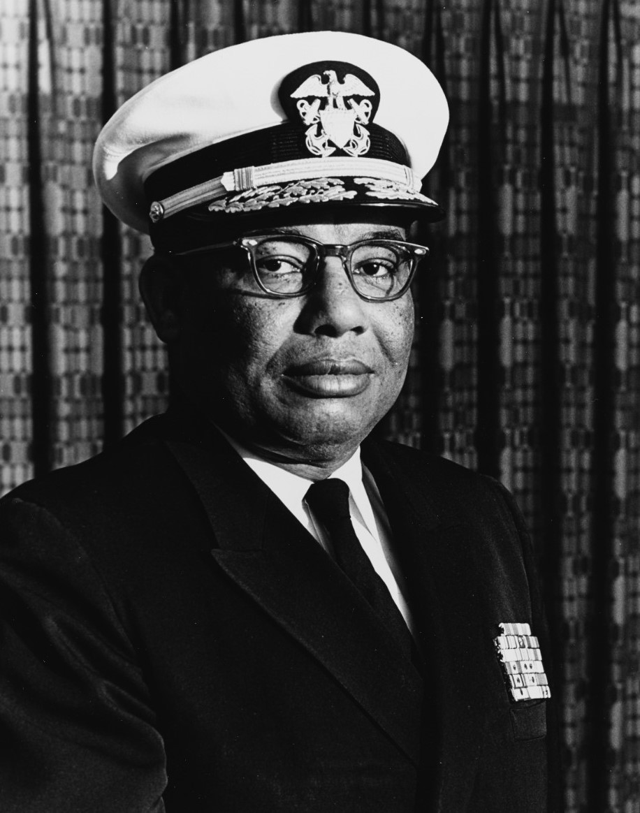 Samuel Gravely Jr. (pictured, right); Henry Gabriel Sanchez, a prominent Hispanic naval aviator; mathematician and computer science pioneer Grace Hopper; highly decorated medical physician Joel Boone; Gordon Beecher, composer of over 700 pieces of music; Joy Bright Hancock, one of the first women sworn into the regular U.S. Navy in 1948; dive bomber pioneer Arthur Davis; first female carrier-based fighter pilot Kara Spears Hultgreen; and five-war veteran Clark Woodward. These individuals represent the progress and distinctiveness of the Navy.