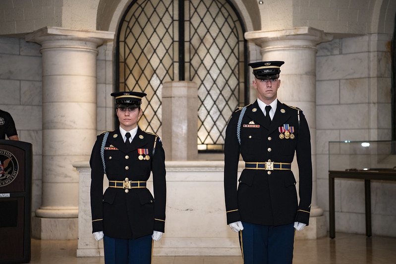 Army Pfc. Jessica Kwiatkowski made history on Sept. 18, 2023, when she became the first woman infantry soldier to earn the Guard, Tomb of the Unknown Soldier Identification Badge. Other women have earned the badge, but they have come from other career fields. Tomb Guards who earn the badge also earn the distinction of being referred to as Sentinels.