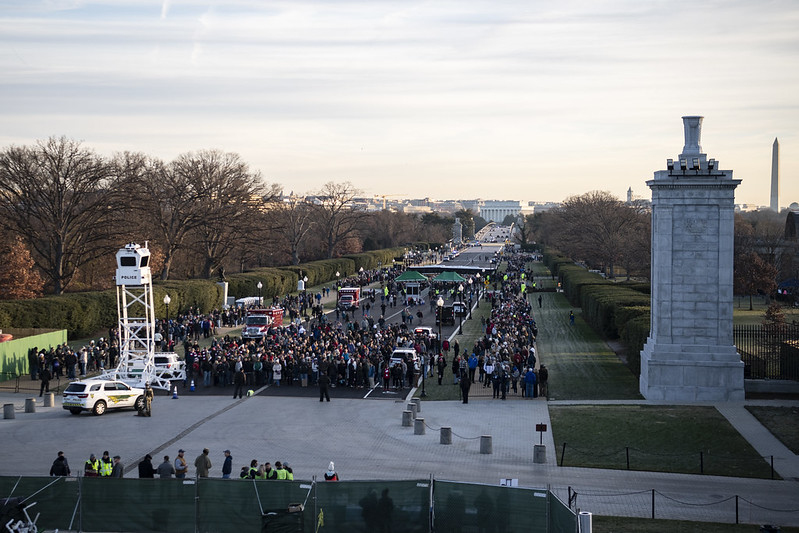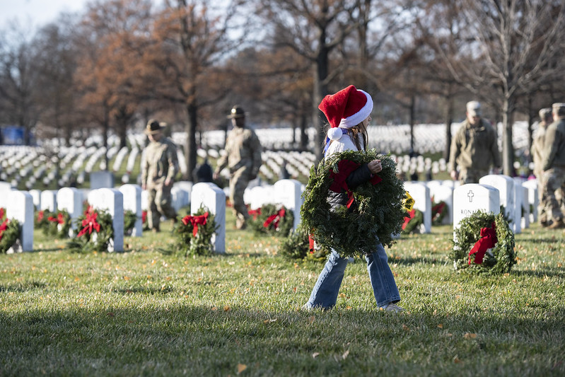 They lined up by thousands to honor the nation’s fallen during the holiday season. When Arlington National Cemetery opened on the morning of Saturday, Dec. 16, 2023, civilians and military personnel alike retrieved wreaths from trucks and headed across the grounds to place them at headstones and columbarium niches.