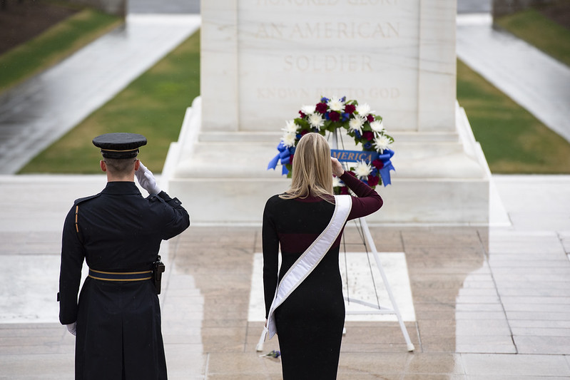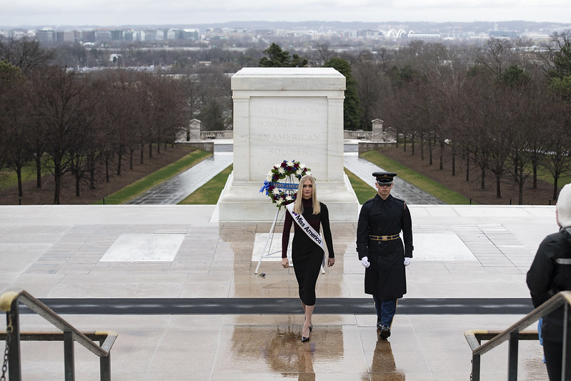 Laying a wreath at Arlington National Cemetery’s Tomb of the Unknown Soldier was doubly special for Miss America Madison Marsh, who also serves her country as a 2nd lieutenant in the U.S. Air Force. Not only was she honoring the sacrifices of the nation’s fallen; she also came to visit the grave of her grandfather, Col. Arthur Henry Marsh, who had served in World War II, Korea and Vietnam as a U.S. Army chaplain.