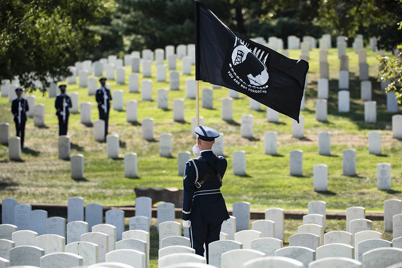 On Sept. 9, 2024, four U.S. Air Force F-16 Fighting Falcons roared over Arlington National Cemetery, and one soared out in the “missing man” formation as a final salute to Col. Joseph Kittinger, Jr., a wing commander during the Vietnam War. As the honor guard carried Kittinger’s urn to Section 36A, a lone airman held high an MIA/POW flag, honoring Kittinger’s eleven months in a North Vietnamese prison camp.