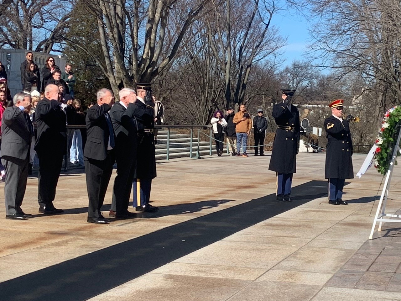 Rado and three other VII Corps veterans laid a wreath at the Tomb of the Unknown Soldier. Other veterans, some wearing Operation Desert Storm baseball caps, watched and saluted as an Army bugler sounded Taps.