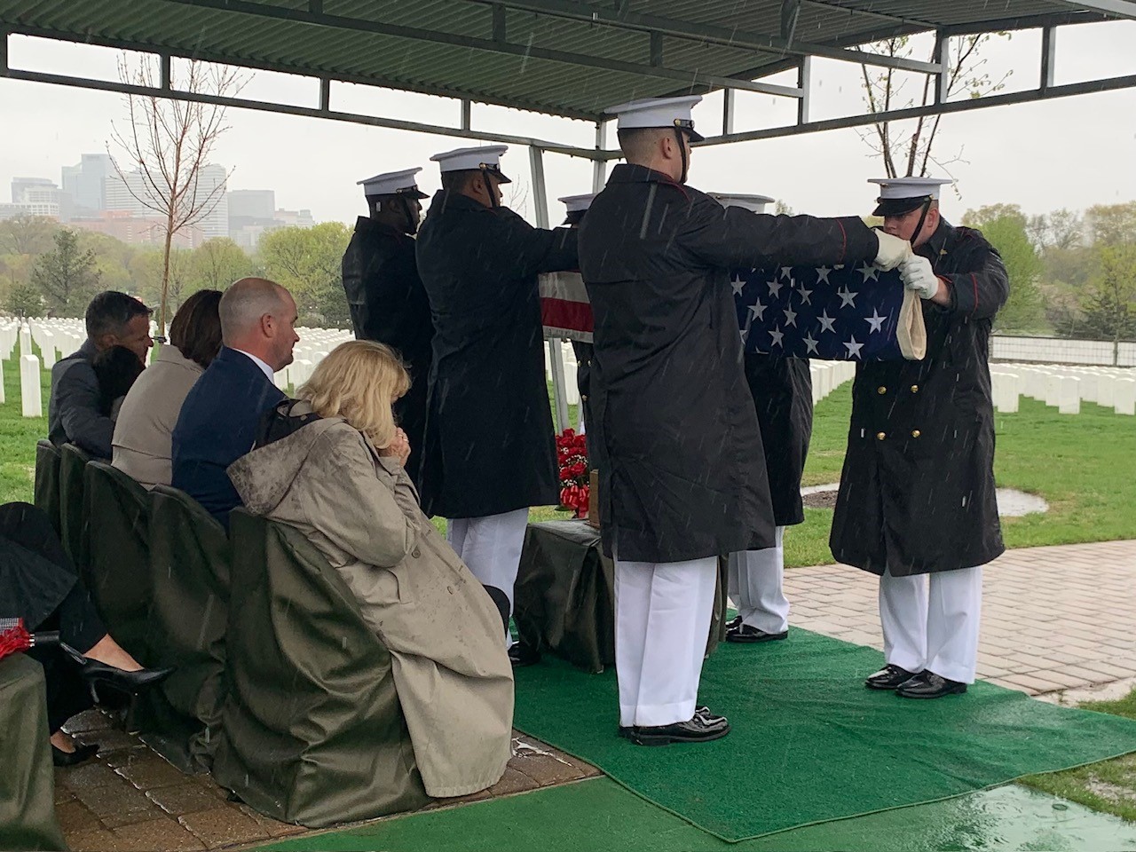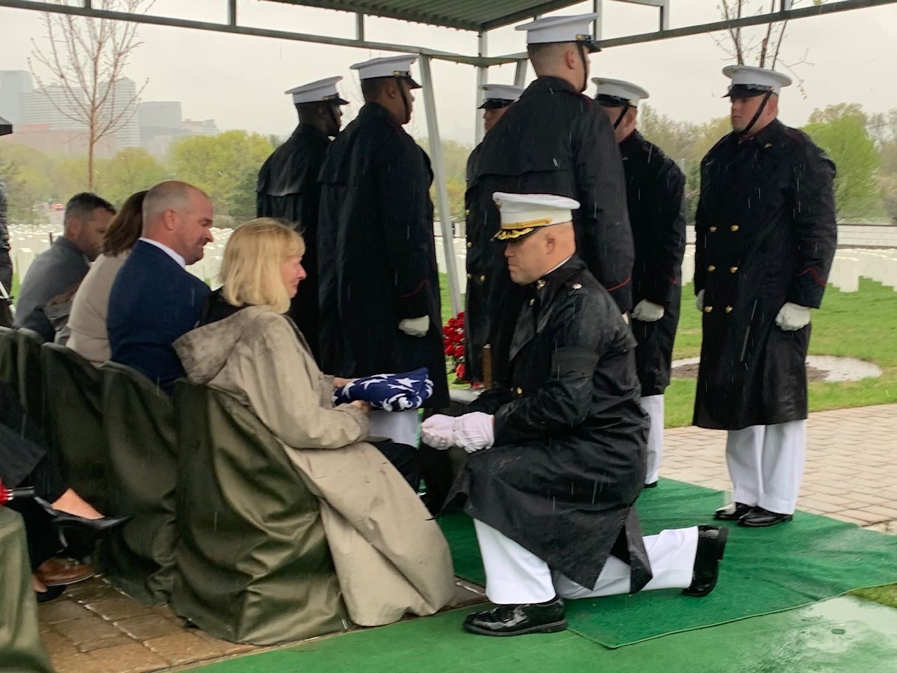 Before she stepped out from the awning protecting her from the pelting rain, she added, “My husband loved to fly, and he loved the Marine Corps.”
