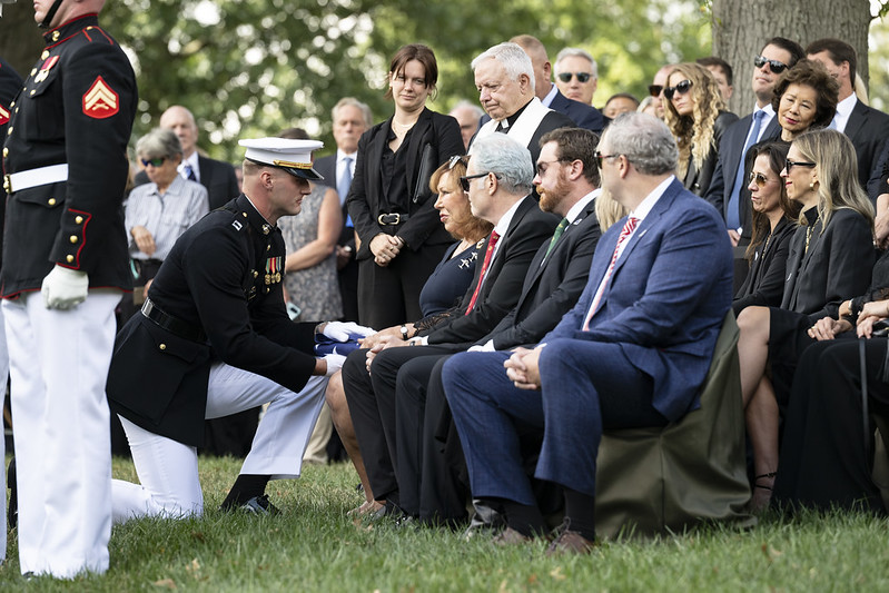 After the service, two of Smith’s ten children reflected on their father’s life. His son Richard recalled how Smith would wake the children for school by blaring the tune “Reveille”—the traditional wake-up call for military personnel—earning him the nickname “Marine Corps Fred.” Smith’s daughter, U.S. Navy Lt. Cmdr. Stacey Rokas, remembered him singing the “Marines’ Hymn.” “We love it to this day because of him,” she said.