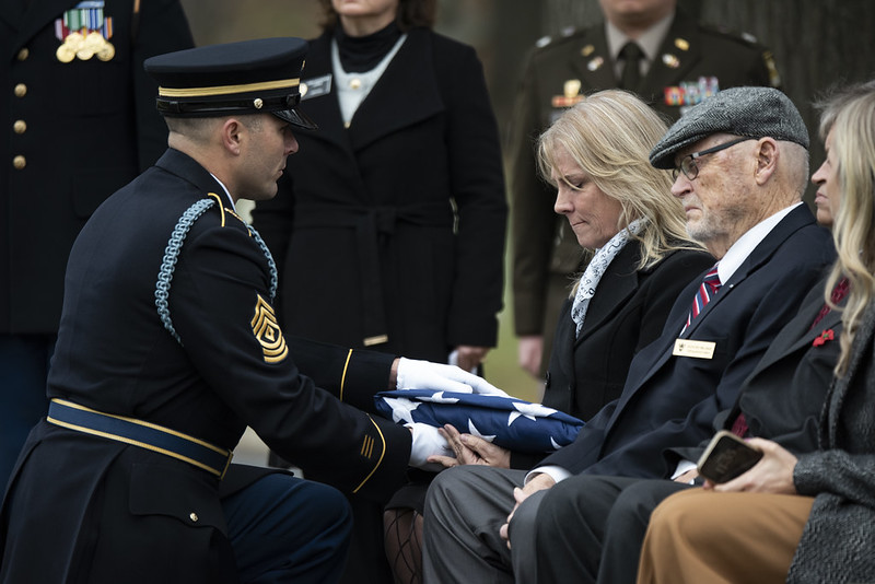 Daczkowski decided to have her grandfather buried at Arlington National Cemetery “to honor the service he gave and the sacrifice of his life.” At the funeral on Nov. 21, 2025, U.S. Army Chaplain (Capt.) Albert Addison noted that Moore had earned the Bronze Star and the Purple Heart, among other decorations. The Purple Heart, he added, signified that Moore had “shed his blood in defense of our nation.”