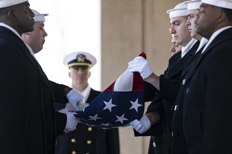 On March 20, 2026, Jay’s funeral at Arlington National Cemetery honored her life and wartime service. Navy sailors in dress blues marched her urn and a folded American flag from the hearse to Columbarium in Section 82, where they unfolded the flag and held it tightly over her urn.