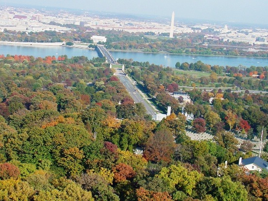 The entrance to Arlington National Cemetery extends across the Potomac River to near the Lincoln Memorial at the eastern edge of Memorial Bridge. Memorial Avenue, Memorial Bridge and the entrance to the cemetery were designed as a single project, dedicated on January 16, 1932 by President Herbert Hoover.
