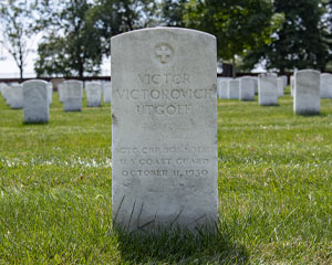 Victor Utgoff became a naturalized U.S. citizen on 14 January 1928. Seeking a greater connection with flying, he enlisted in the U.S. Coast Guard on 8 November 1929, at forty years of age. Less than a year later, on 11 October 1930, Utgoff’s airplane crashed while he was returning from a test for a commercial pilot’s license. He was buried at Arlington National Cemetery with full military honors on 16 October 1930. Three of his sons also served the United States; two, Vadym and Victor, are buried here at Arlington.