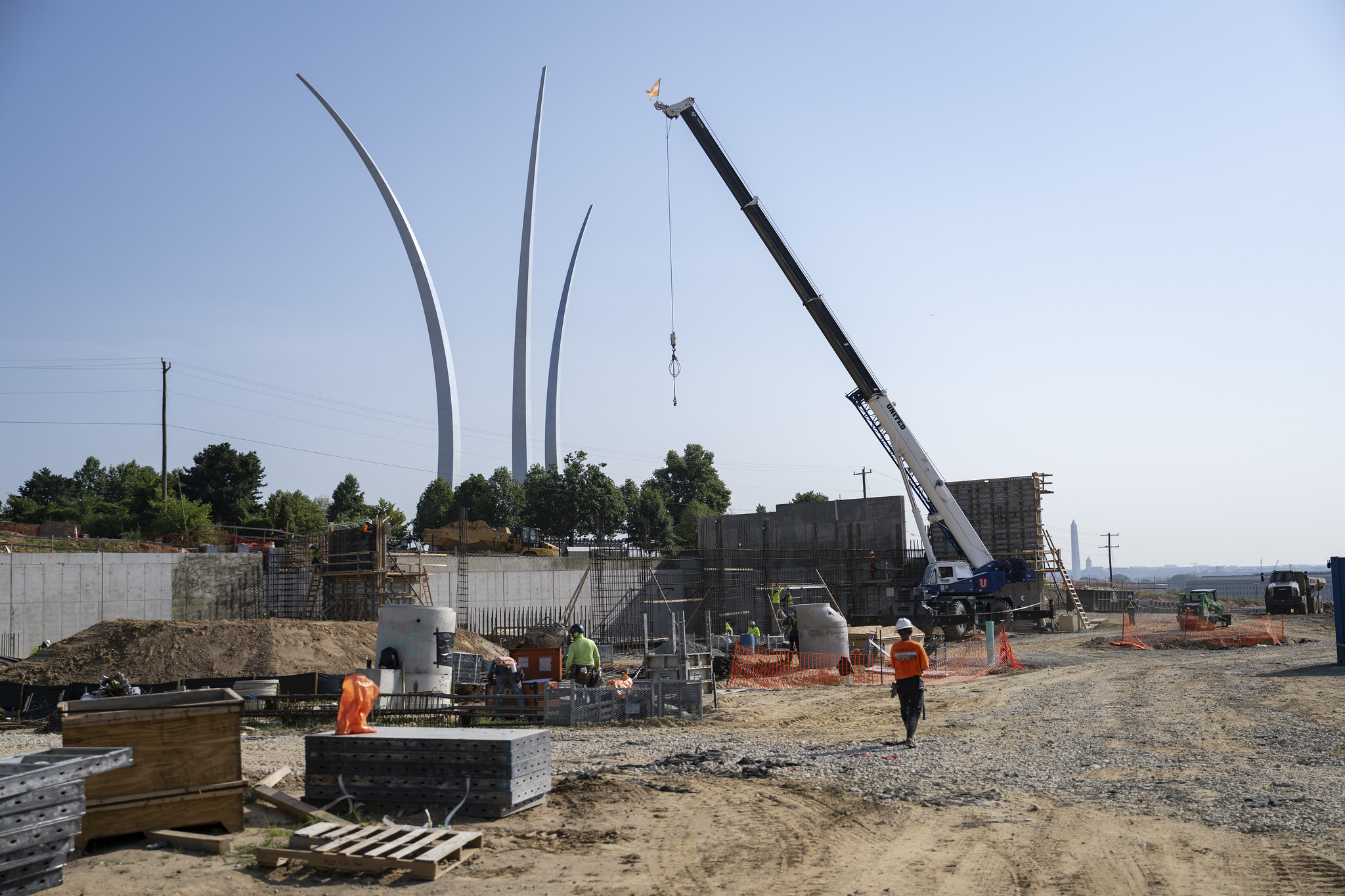 To ensure visitor safety during this key phase of construction, the Air Force Memorial will be temporarily closed beginning Sunday, June 15th, and will reopen on or about Thursday, July 26th, 2025. During this time, the main entrance to the Air Force Memorial will be inaccessible.