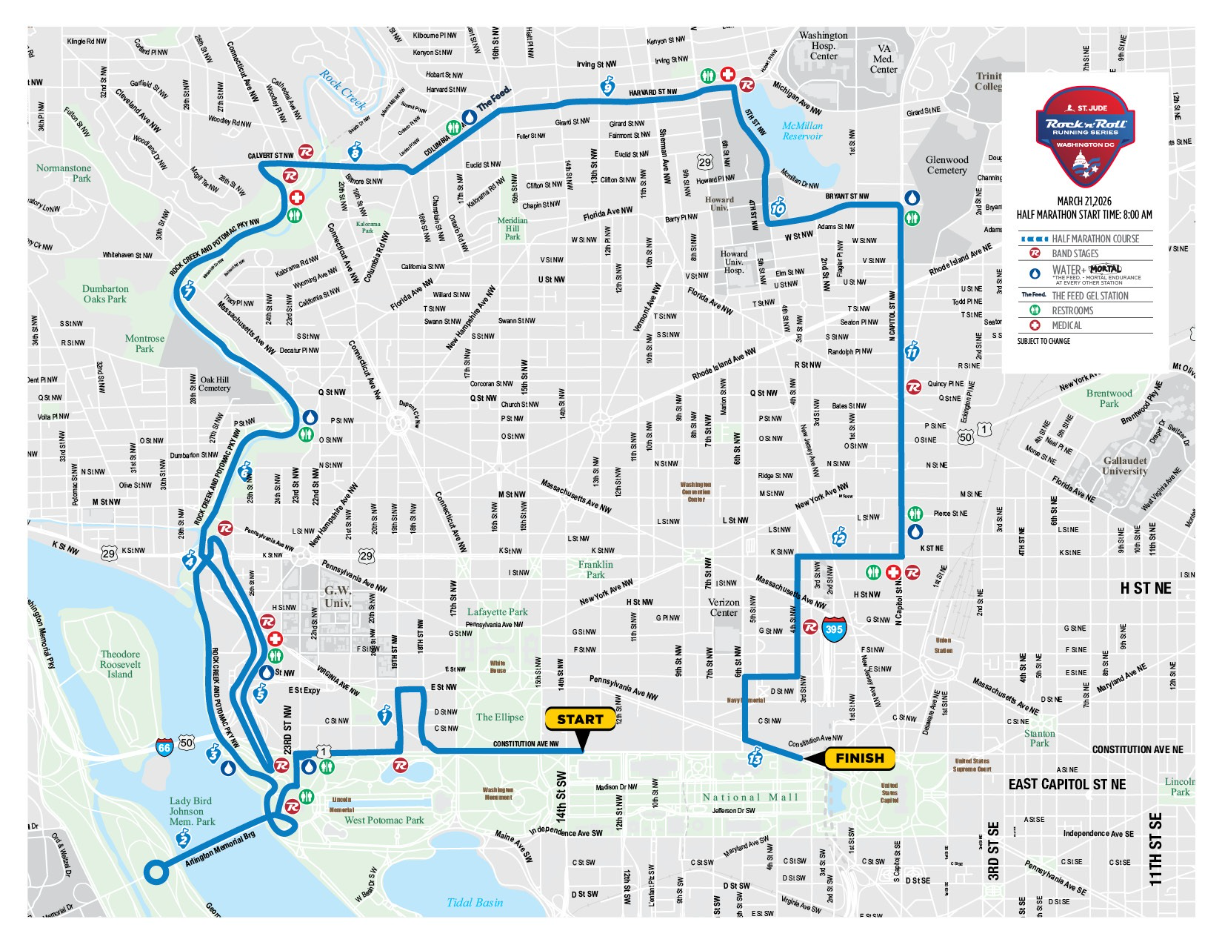 On Saturday, March 21, Memorial Bridge and Circle will close from 7 to 10 a.m. for the Rock 'n' Roll Half Marathon.